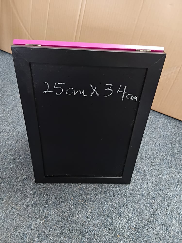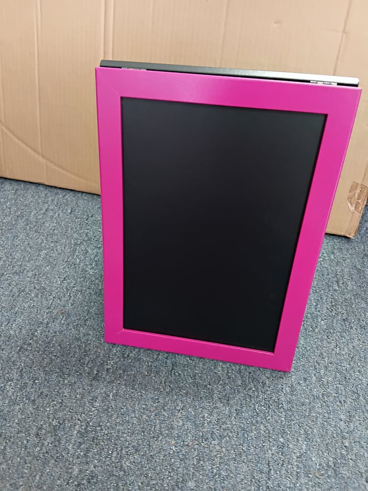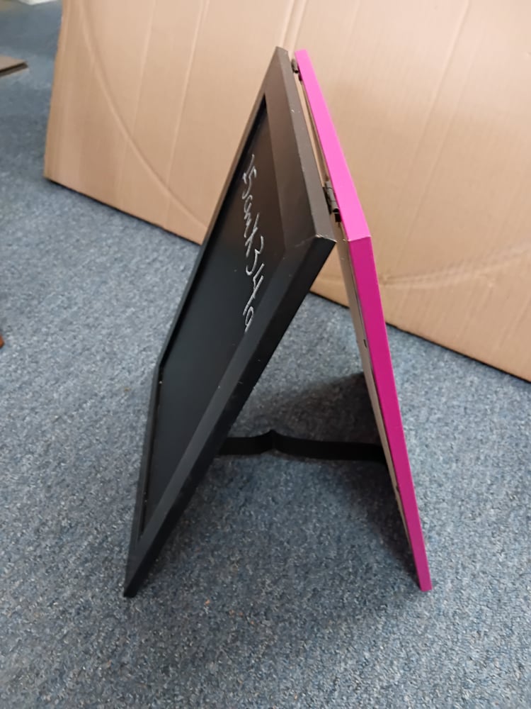 Pink and black table standing chalkboard